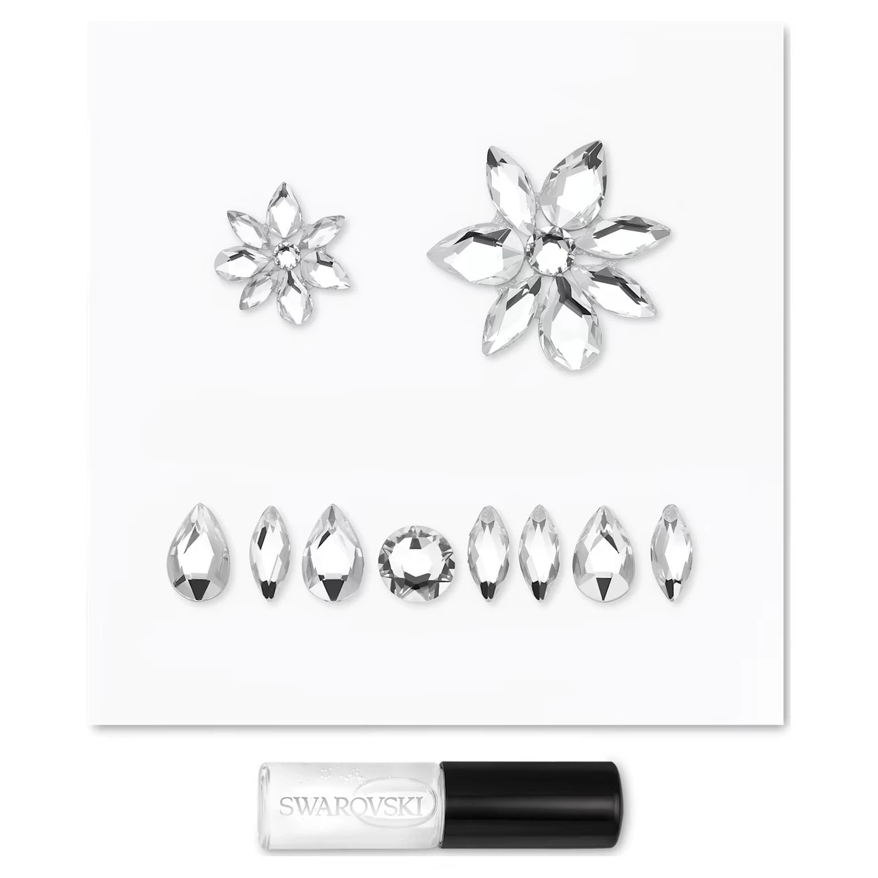 These re-wearable body jewels are the essence of joyful glamour, designed to be worn on your body to amplify your style for festivals and special celebrations. This set contains a small and medium floral design, plus a third floral motif that can be customized using eight loose crystals. It also includes a gloss adhesive so they can be worn multiple times. Style them however you like and shine on. Not a toy. Not intended for use by children under the age of 15.