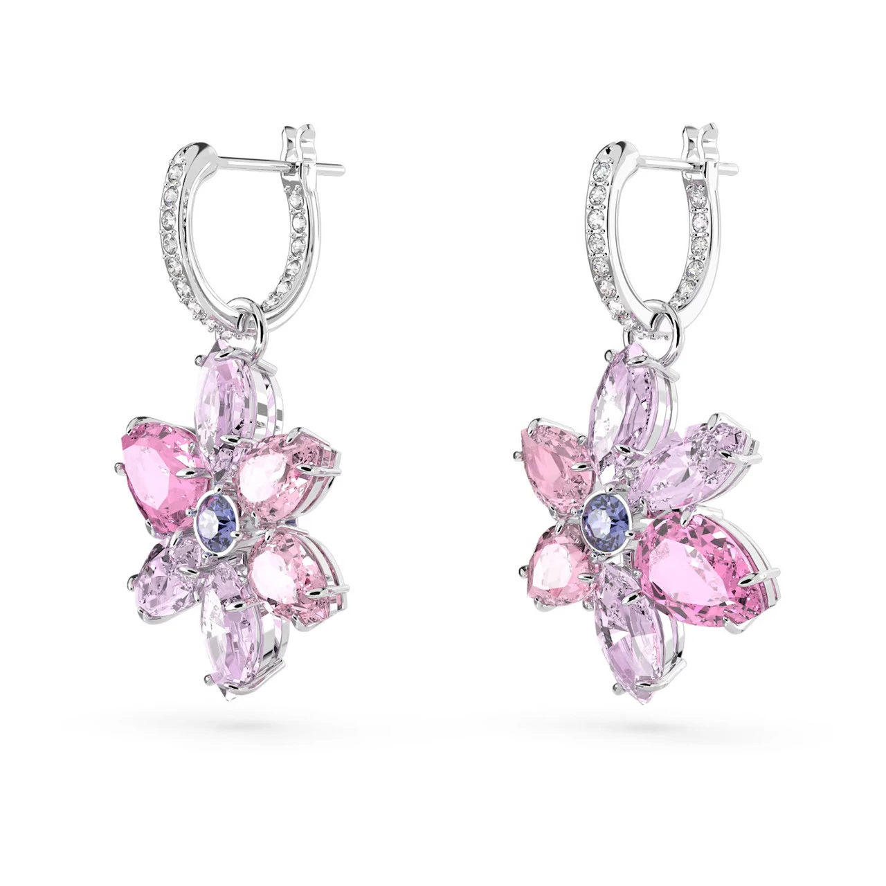 With the signature vibrancy of the Gema family, these charming earrings are a perfect choice for those who love the mini hoop style. Each piece features an array of purple stones in a mix of cuts which combine to create a fresh, floral motif that hangs from a rhodium plated hoop. These easy-to-wear earrings will be an everyday favorite.