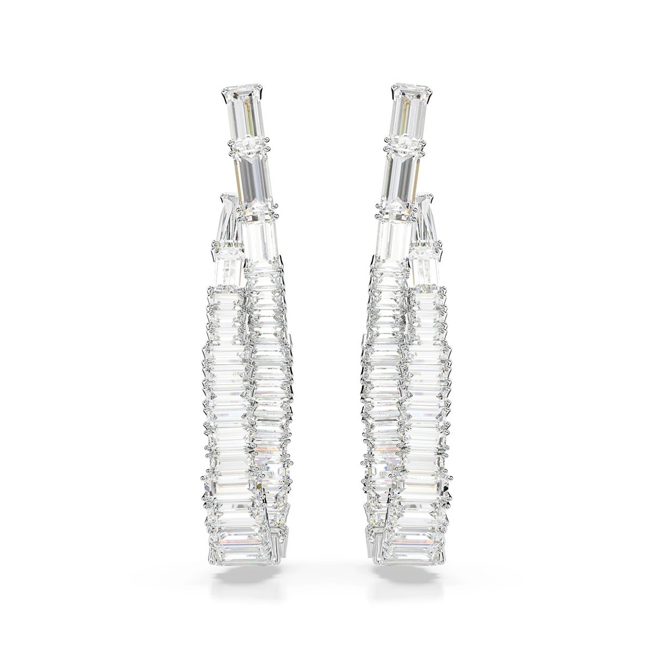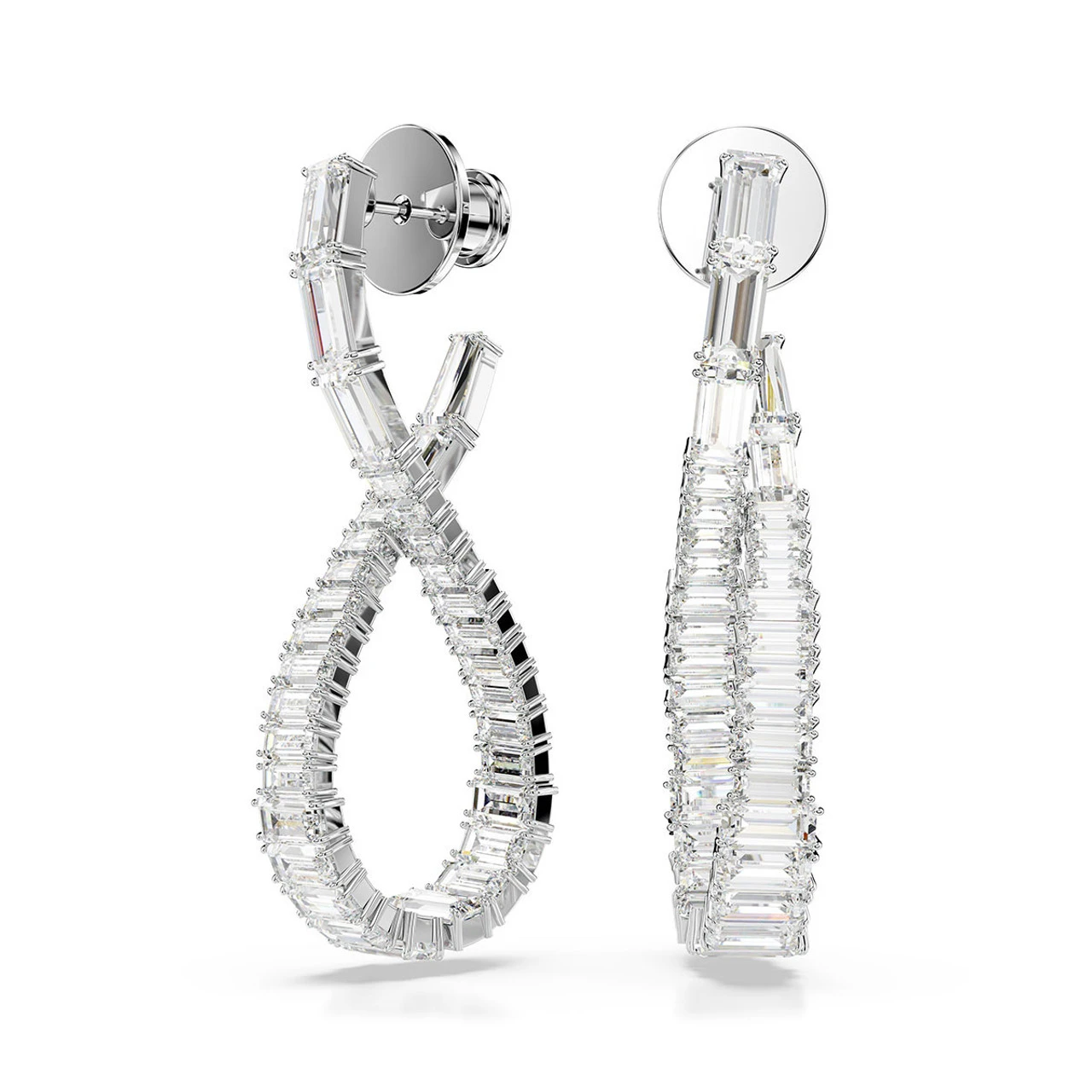 Inspired by the shape of an infinity motif, these striking Hyperbola earrings exude endless beauty. Each rhodium-plated piece is crafted with a slender twist and adorned with an array of clear Swarovski Zirconia in mixed cuts. A graceful and eye-catching way to elevate your evening style.