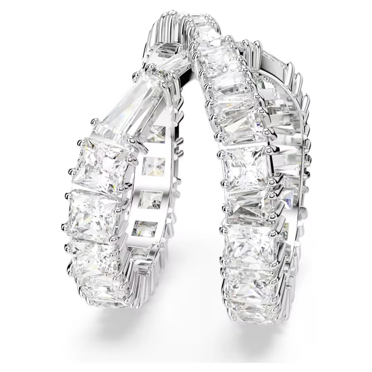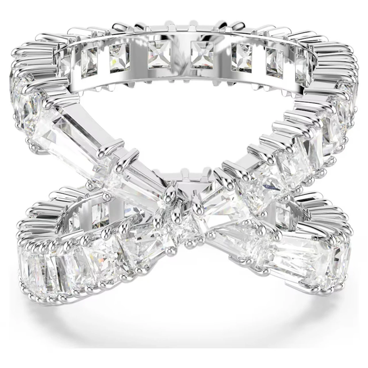 Inspired by the elegant and timeless infinity motif, this mesmerizing Hyperbola ring is a unique way to energize your style. The rhodium-plated jewelry features a never-ending band, which crosses over at the middle. Brightly embellished with an array of clear Swarovski Zirconia, the versatile piece can be worn either way around depending on your mood. Pair this ring with a matching bangle or necklace for ultimate evening glamour.