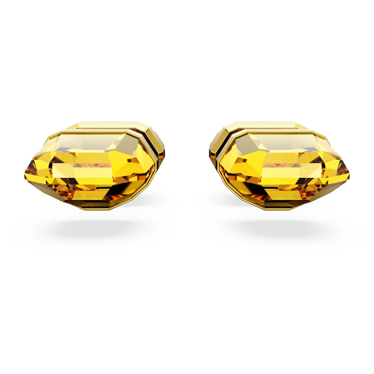 Let your style shine through with these vivid stud earrings, which combine glowing color with innovative design. Designed to put the crystals in the spotlight, each piece features precision-cut stones to the front and back in luminous yellow on a subtle gold-tone plated setting. Style them to lift a casual daytime look.