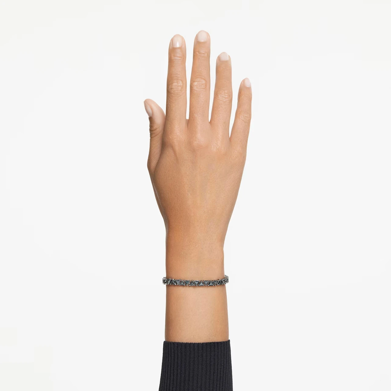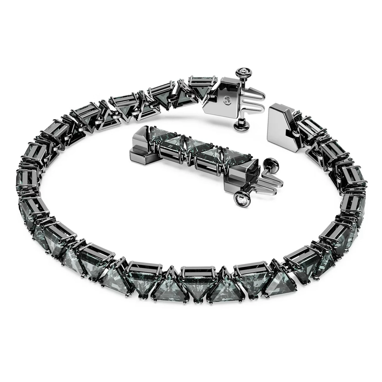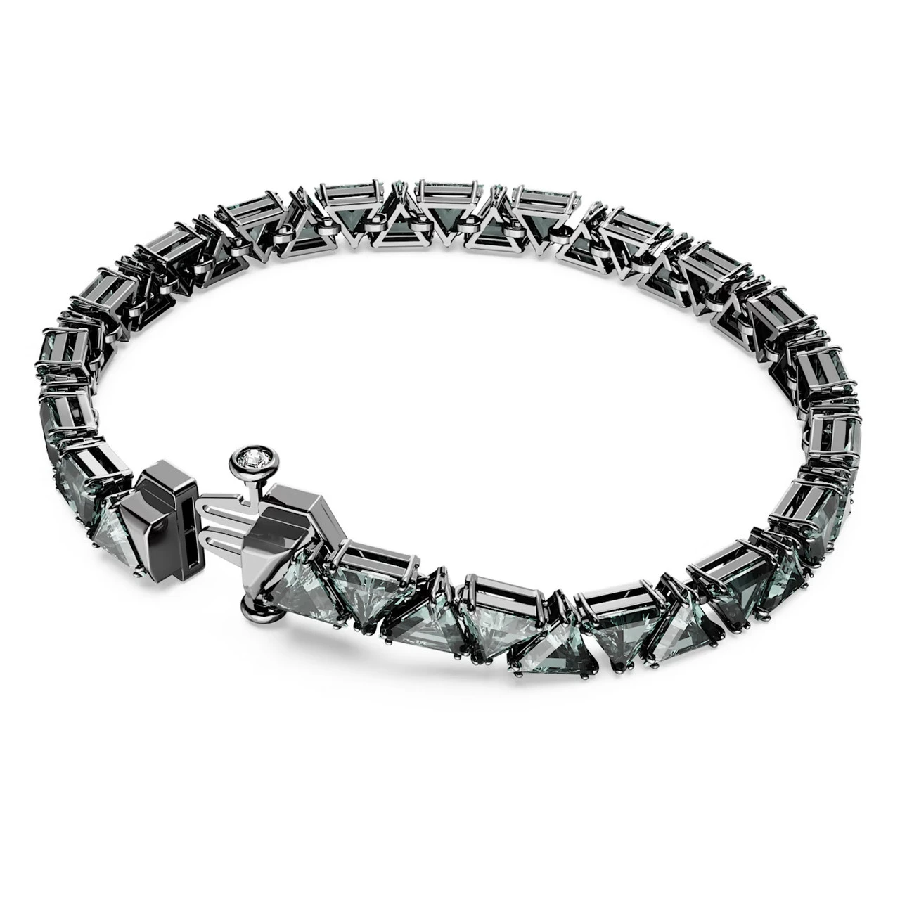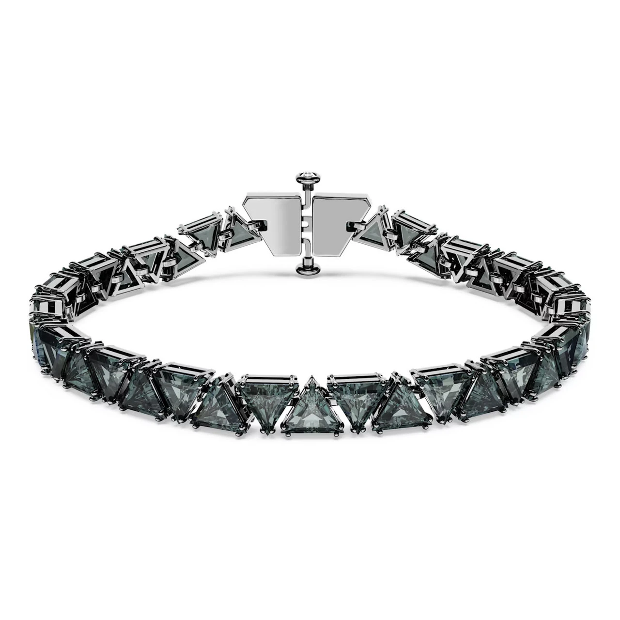 Dark and mysterious, this Matrix bracelet with triangle-cut stones is the definition of understated luxury. The black Swarovski Zirconia in a refined double-prong setting is perfectly matched with the ruthenium plating, delivering deep drama for any occasion.