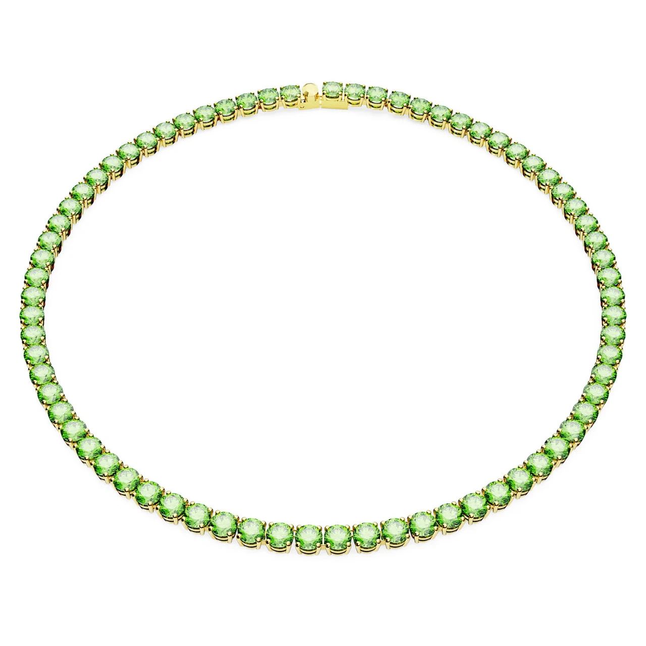 This radiant Matrix Tennis necklace is brought to life by a vibrant row of round green stones set in gold-tone plating. The sleek uniformity and refined closure make this design feel almost endless in its fluidity. This easily styled piece is sure to be an everyday favorite.