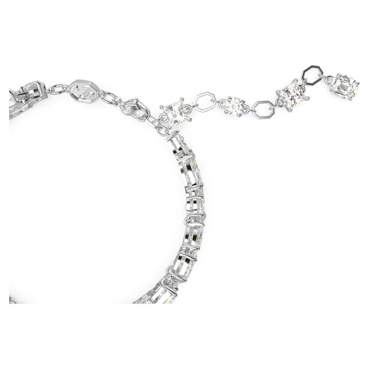 Make this extraordinary double-row bracelet one of the defining pieces of your jewelry collection. The rhodium plated design combines a radiant cluster of prong-set Swarovski Zirconia in a dramatic mix of cuts finished with a lobster closure. For added luxury, the hanging elongation features a string of Swarovski Zirconia. Pure elegance for your own evening style, or a wondrous gift for a loved one.