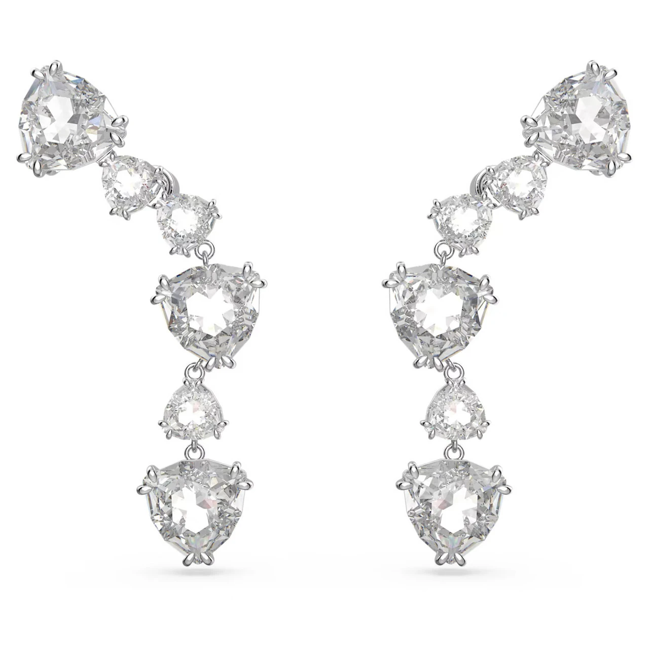 With a hypnotic cluster of shining clear crystals, these glowing ear cuffs are an ideal way to make an evening statement. Styled with a rhodium plated setting, the design features crystals in a variety of extraordinary cuts, all with an open back for a fine jewelry look. Each stone is set to enhance movement and fluidity, giving you a pair of ear cuffs that dances in the light.