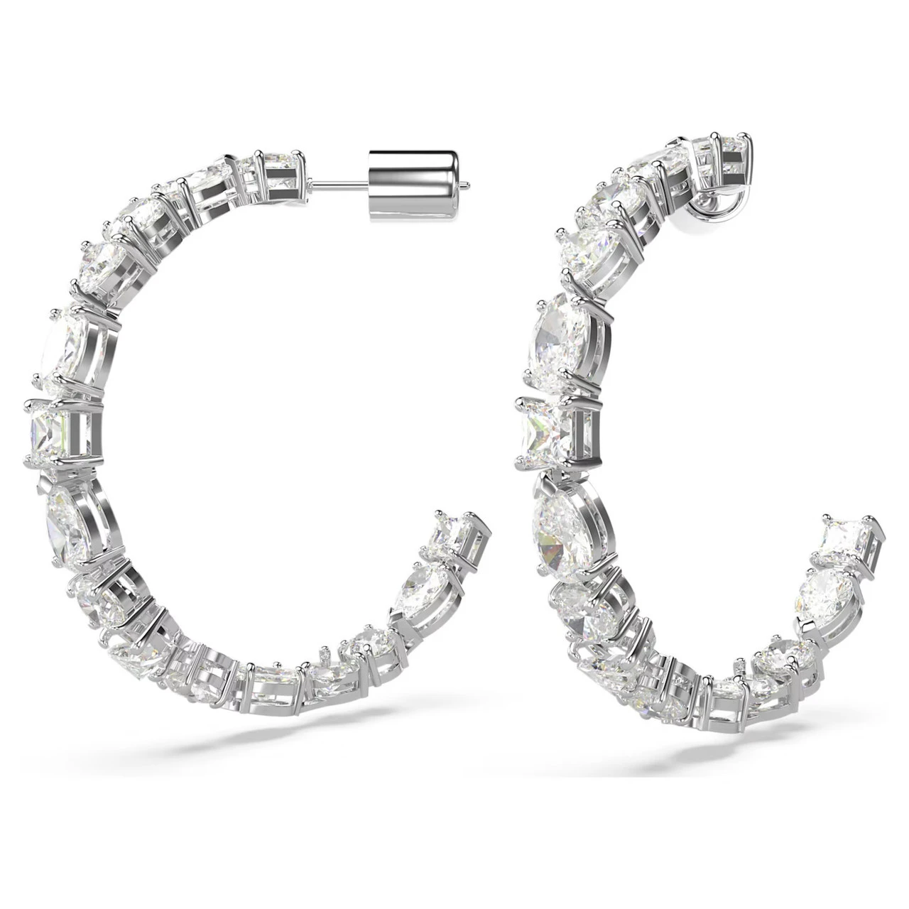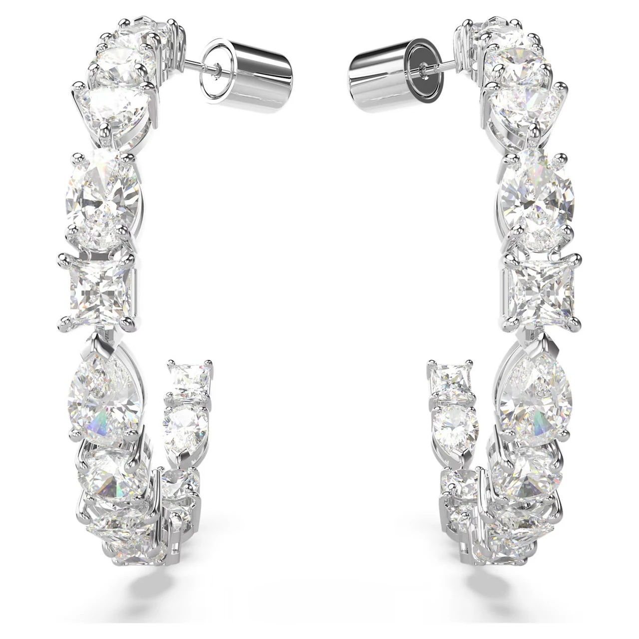 A style that certainly stands out from the crowd. These exquisite Mesmera earrings were made for impact, with rhodium plated hoops that are prong-set with a dazzling array of Swarovski Zirconia cuts. The dramatic mix of stones ensures that every detail has a show-stopping effect. Gift these pierced earrings to a loved one who adores elegance.