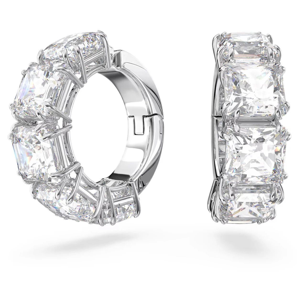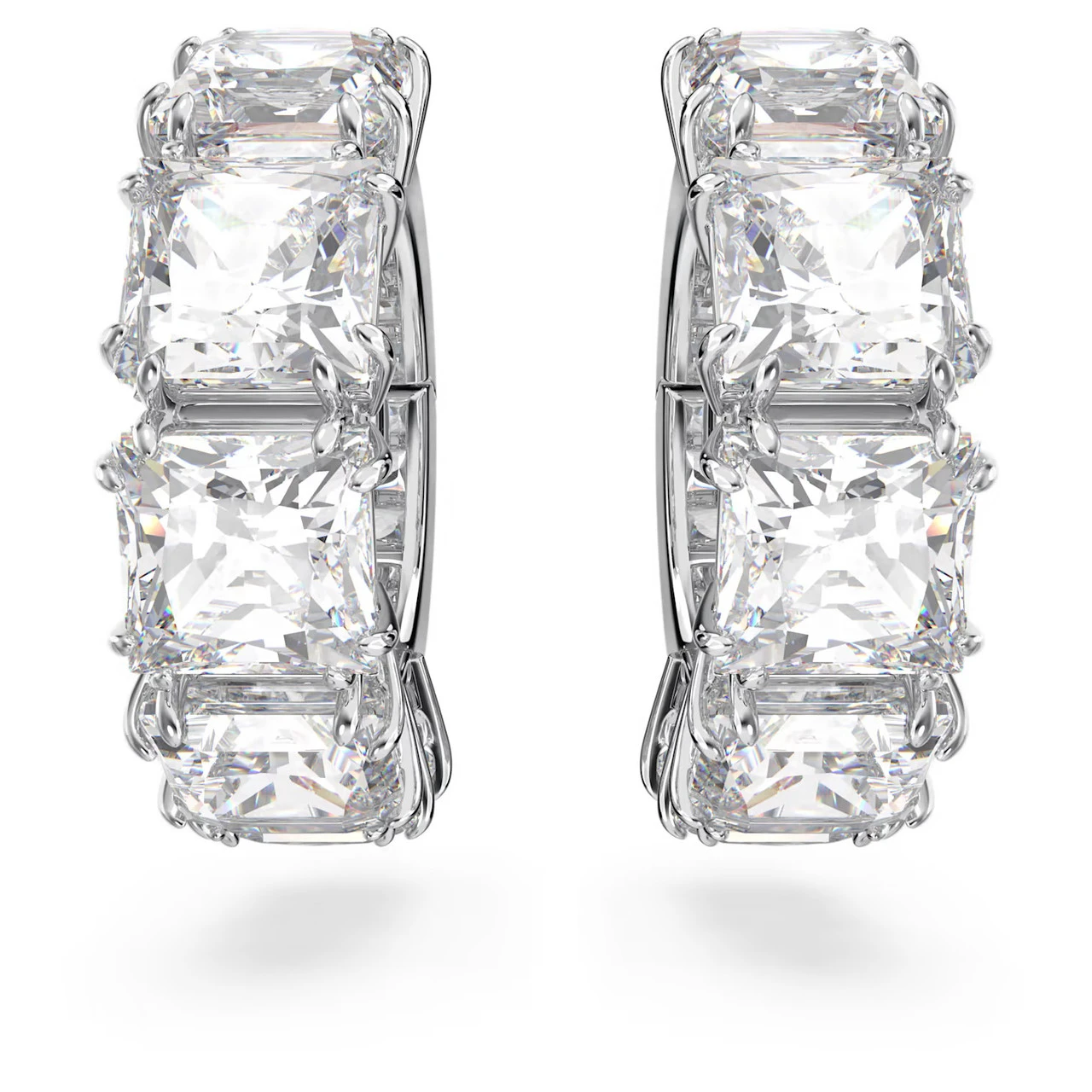 The essential style of our Millenia family is masterfully displayed in these shining clip earrings. A uniform row of clear square-cut stones is set in rhodium plating, igniting a harmonious balance of metal and crystals. It’s a dazzling look that can be enjoyed any time – day or night.