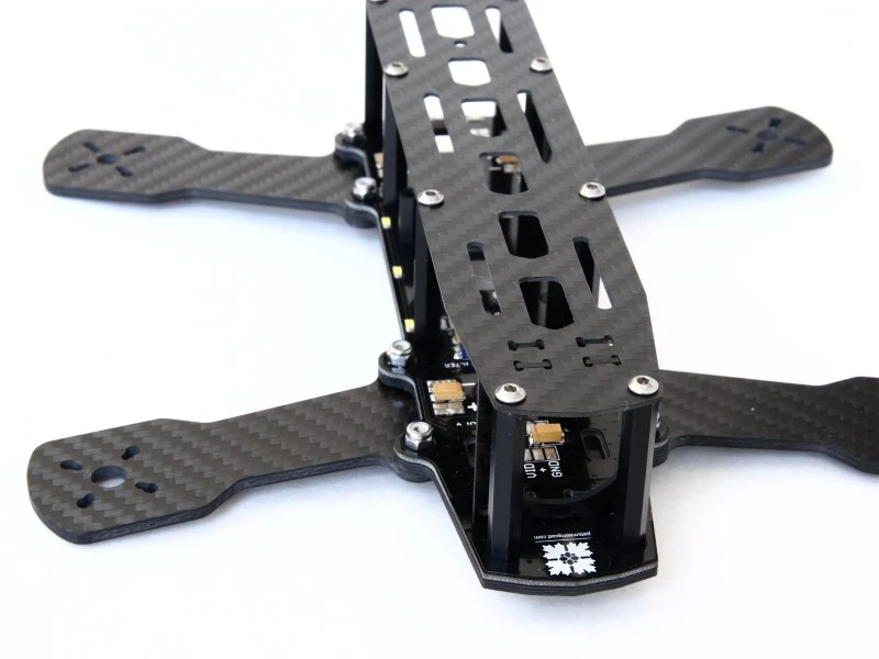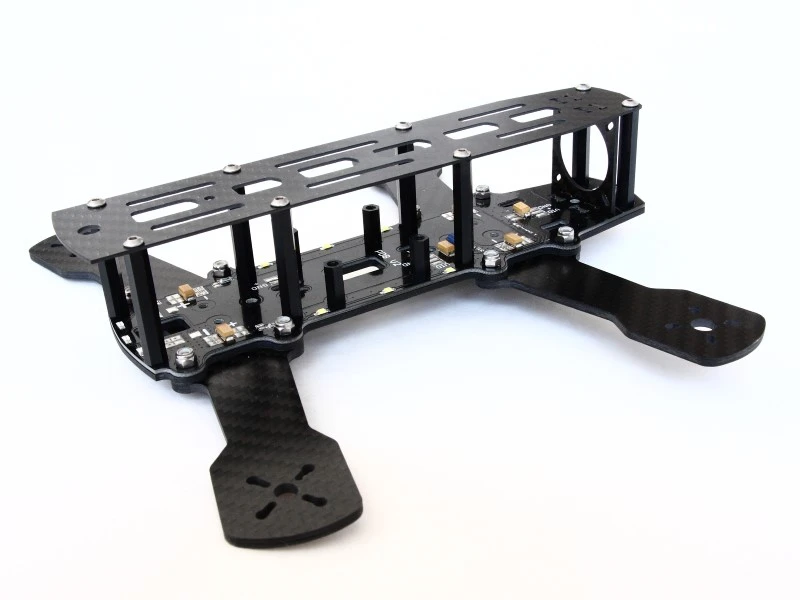 Includes the power distribution board with LEDs and onboard filtering! More info on the PDB here. Canada’s response to the Mini Quad craze! A superbly engineered, precision cut pure 3K Twill Weave Carbon Fiber frame. Designed by Pat Gualtieri to be lightweight and tough enough to take a beating, the Minion takes your mini-FPV experience to the next level. New chunky arms to withstand the added stress of larger motors and higher speed impacts. The yoke arm design provides superior strength and rigitdy compared to individually mounted arms. Note that unlike some other designs, the Minion does not mount ESCs inside or under the frame. They are heat generating components and perform much better when mounted on the arms where they can take advantage of airflow. This quad is designed for performance.