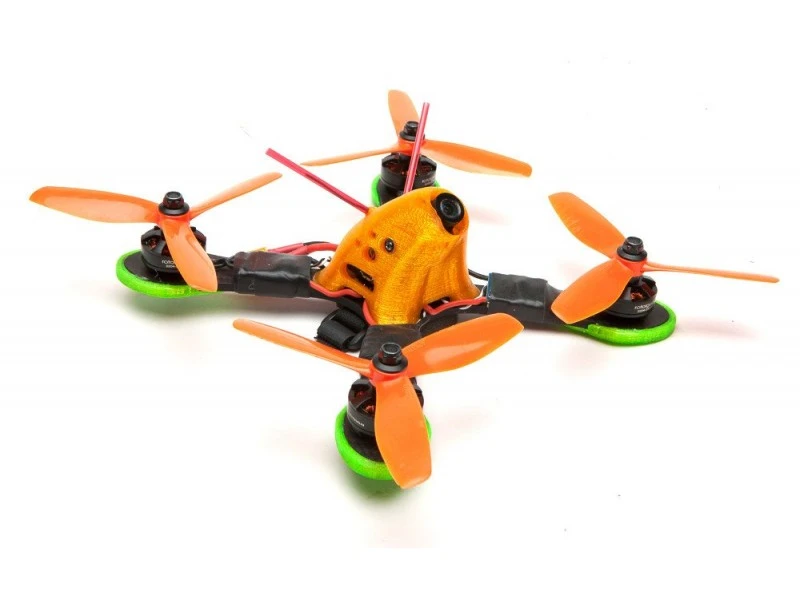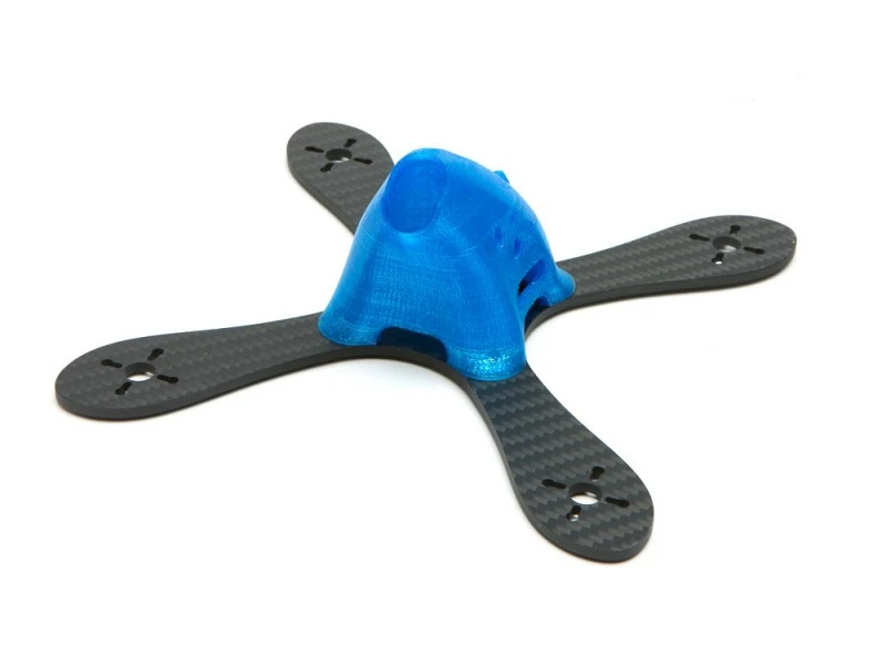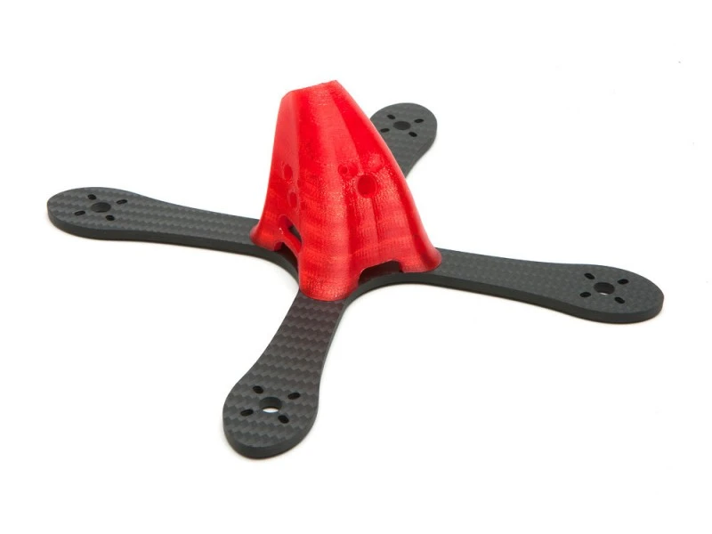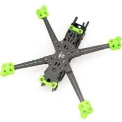The pod is printed from TPU and is virtually indestructible. The 5″ frame is cut from 4mm carbon and supports 220x and 180x sized motors, only 2 screws can be used for 220x motors. The 5″ frame is 88 grams.