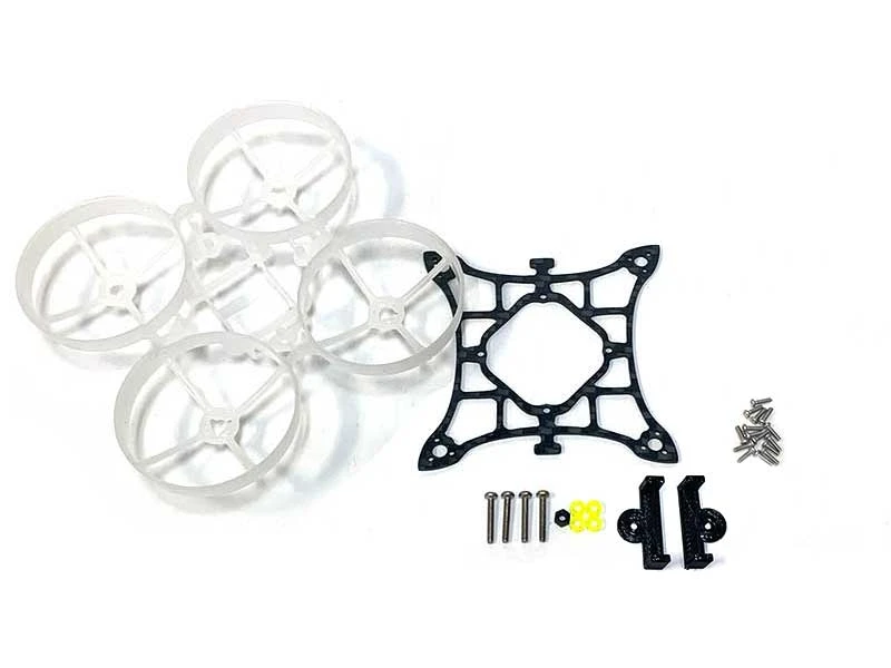 Designed to be an indoor/outdoor whoop running an AIO whoop board, 08XX/11XX motors, 40mm props with ducts and powered by a 2S battery (our recommendation). The frame is 1.5mm thick with small tabs to conveniently install an elastic band as a battery holder. The 82mm motor-to-motor distance gives enough clearance between the props/ducts and the FC to reduce damage from bad crashes. You can build it as an Analog or a Walksnail HD machine.