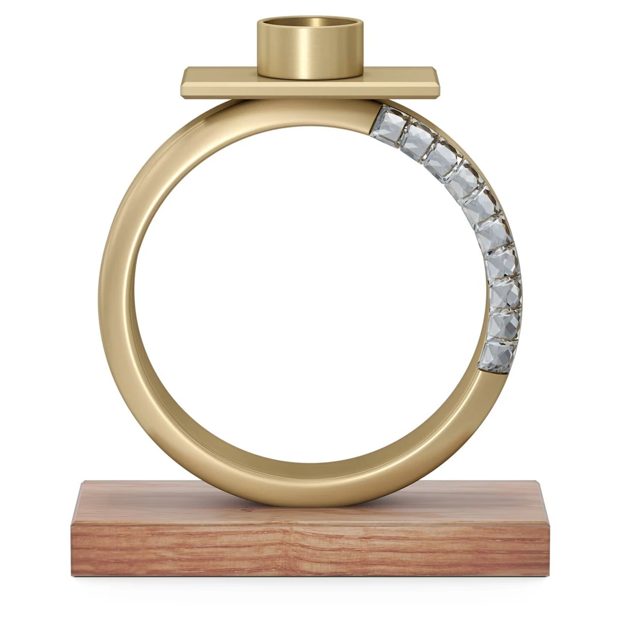 This intriguing candle holder is inspired by the shapes and warm colors of an African sunset. The design harmoniously combines 371 clear crystal facets, a wooden base, and metal with a brushed champagne gold-tone finish. Its striking, asymmetric silhouette adds instant sophistication to any space and pairs perfectly with other pieces from the African Sunset collection. An inspired gift idea for a wedding, birthday, or anniversary. Candle not included. Decoration object. Not a toy. Not suitable for children under 15.