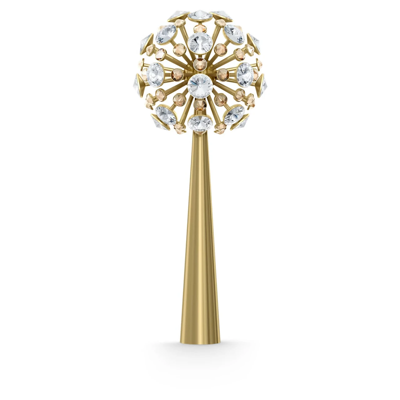 Add a burst of elegance with this modern tree topper. Inspired by the geometric look of our Constella jewelry family, the design blends warm, timeless colors with an innovative 3D silhouette. An explosion of 85 clear and gold-colored crystals, with 1,922 facets, shimmer in brushed champagne gold-tone plated metal settings. A brilliant gift idea, or a luxurious highlight for your own festive décor. Decoration object. Not a toy. Not suitable for children under 15.