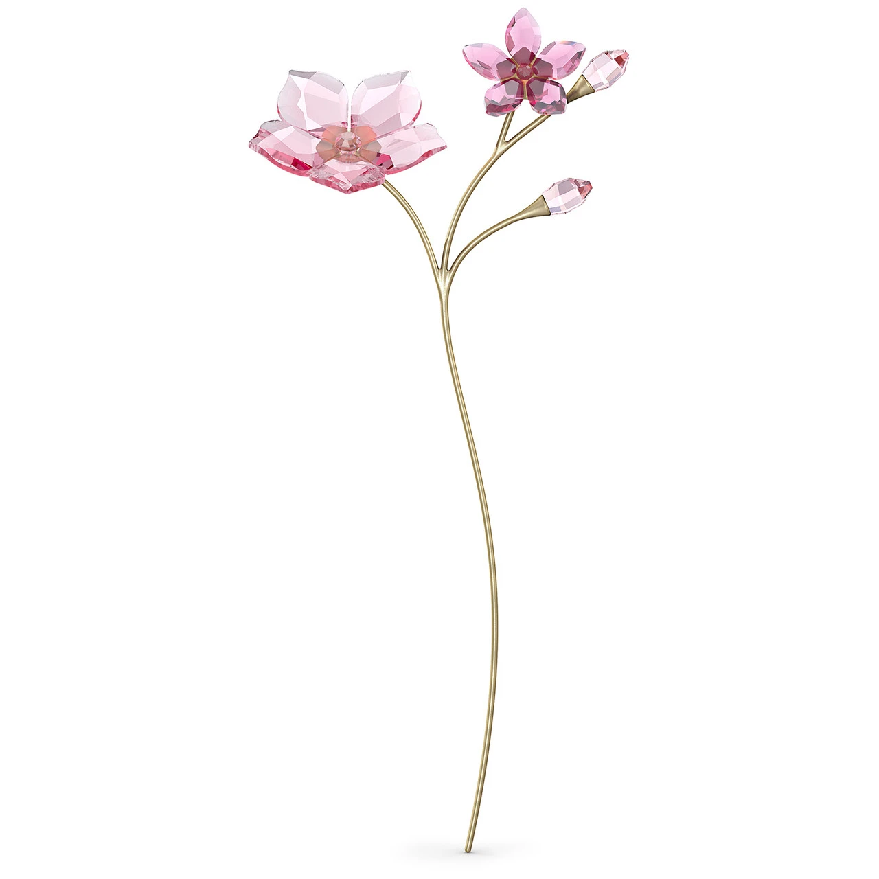 Inspired by the minimalist trend for single flower vases, this pink crystal creation depicts a cherry blossom. Sparkling with 230 facets, it is complemented by a modern brushed metal stem in golden tones. A gorgeous gift, display this spring floral favorite in either the small or large Garden Tales Decorative Vase to add refined style to a home. Decoration object. Not a toy. Not suitable for children under 15.