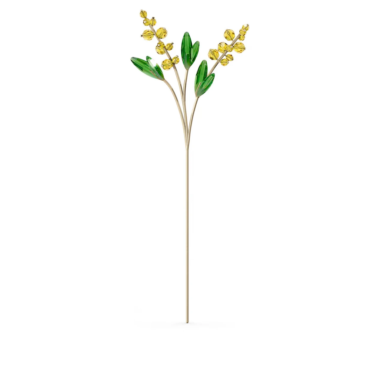 Inspired by the modern trend for single flower vases, this gorgeous and naturalistic crystal creation depicts a mimosa. Often used in symbolic poetry, the mimosa represents the sun and is often used to symbolize secret love. Crafted in green and yellow crystals, with a brushed champagne-gold tone plated metal stem, it’s a fresh and elegant look. A lovely gift, it can be presented in either the small or large Garden Tales Decorative Vase. Decoration object. Not a toy. Not suitable for children under 15.
