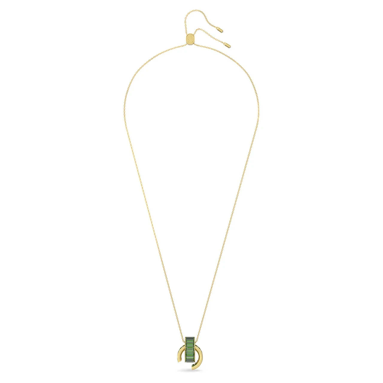 This ultramodern pendant is set to become an everyday favorite. Dazzling with green baguette-cut crystals, it features interlocking shapes inspired by the double helix structure of DNA, and is finished with a gold-tone plated chain. Wear yours solo or layered with matching pieces from the Matrix family.