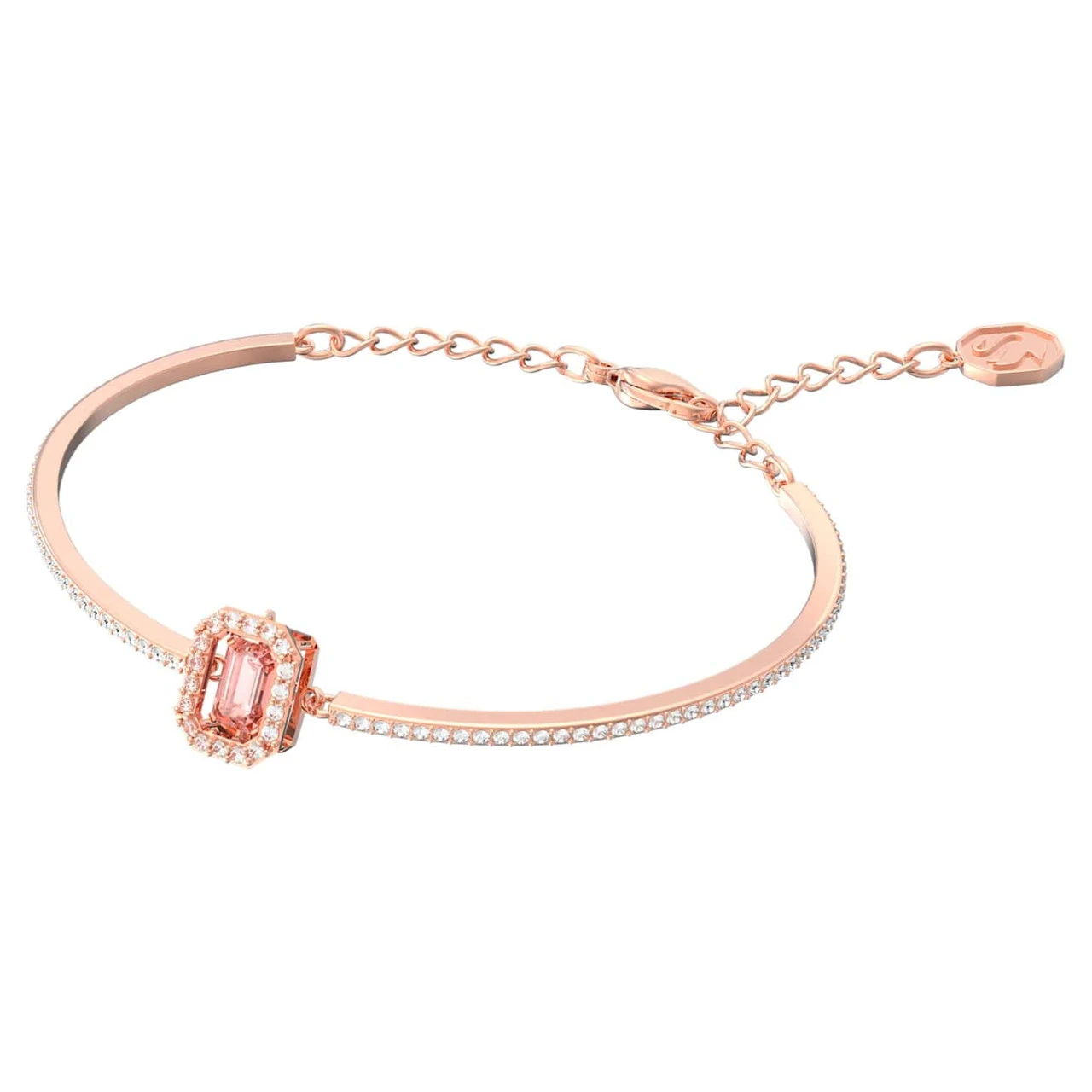 With its eye-catching pink centerpiece, this bangle will make a beautiful addition to your everyday wardrobe. Both the octagon cut stone and elegant rose gold-tone plated band are adorned with smaller white crystals, delivering a truly feminine design that will never go out of style. Wear yours solo or teamed with the matching necklace to complete the set. This bangle is part of the Millenia family, designed by Creative Director Giovanna Engelbert for Collection III.