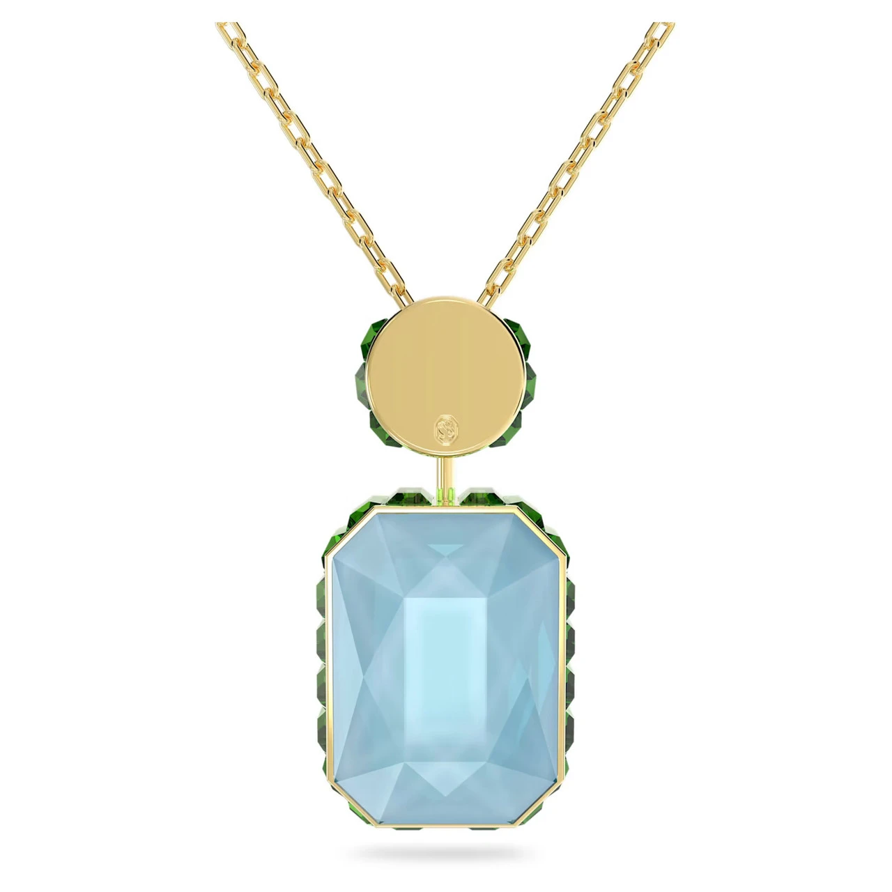 This Orbita necklace is a playful exploration of color. With its innovative hinge mechanism, the octagon-cut crystal is reversible, so you can choose the vibrant yellow or blue side depending on your mood. Framed with contrasting smaller green crystals, the pendant is suspended from a gold-tone plated chain. Style yours with other pieces from the Orbita family for a show-stopping finish.