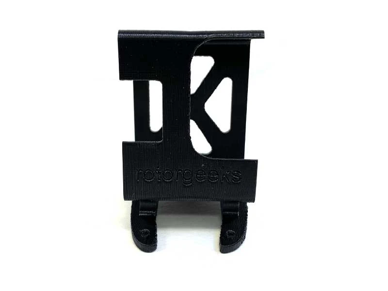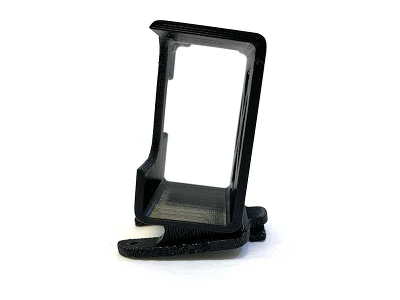 A dedicated 3D printed Go Pro Hero8 Black mount with a 15 degree angle for the Vorsin frame. The mount is secured by two front screws and a twist lock on the back that specifically fits the Vorsin, making for easy removal.