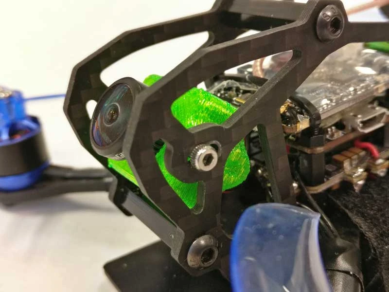 The Runcam Nano is our favorite micro cam for ultra lightweight machines but mounting the caseless camera has always required some creativity! This 3D printed camera mount holds the Nano and provides options. The mount is 20mm wide and comes with M2x5 screws to secure the mount to a frame. The screws are just a friction fit but they hold the camera securely enough. It’s a perfect fit for the Airblade Eclair or any other frame sized to take a Micro cam (Micro Swift, Foxeer Arrow Micro etc).