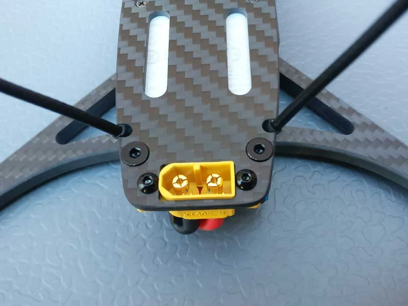 - XT60 frame mounted connector keeps your battery cable safely from props