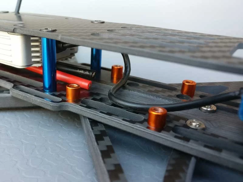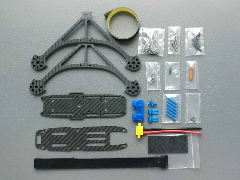 The Vorsin is is an all inclusive premium frame kit made from top quality materials. It comes complete with screws and spacers to fit most stacks, nothing to figure out. Also included are long motor mount screws,TPU pads and even 3 feet of that incredible fabric tape to make your build look totally pro! No additional hardware should be required.