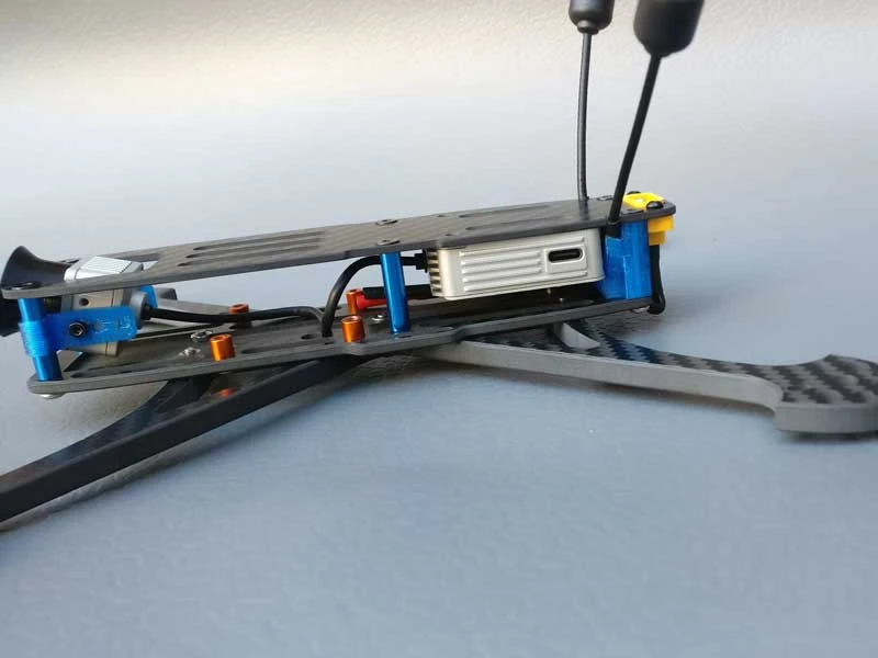 - Position the equipment and structure to best line up CG and CT (centre of gravity, centre of thrust) for optimal freestyle performance in a top mount battery configuration
